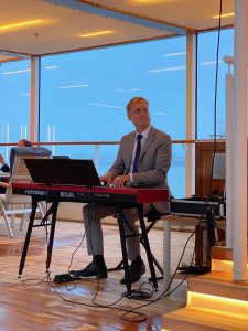 Zur Abendunterhaltung gab es im Hanseatrium das Duo Gare Du Nord und alternativ erfüllte Helge Herr in der Observation Lounge wieder Musikwünsche am Klavier. Für uns war schnell klar, wo der Weg hin ging: in die Observation Lounge, die unser Stammplatz am Abend werden sollte – nicht zuletzt wegen Helge Herr, der als Ozean-Pianist jeden Abend dort spielte.