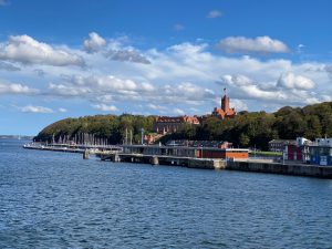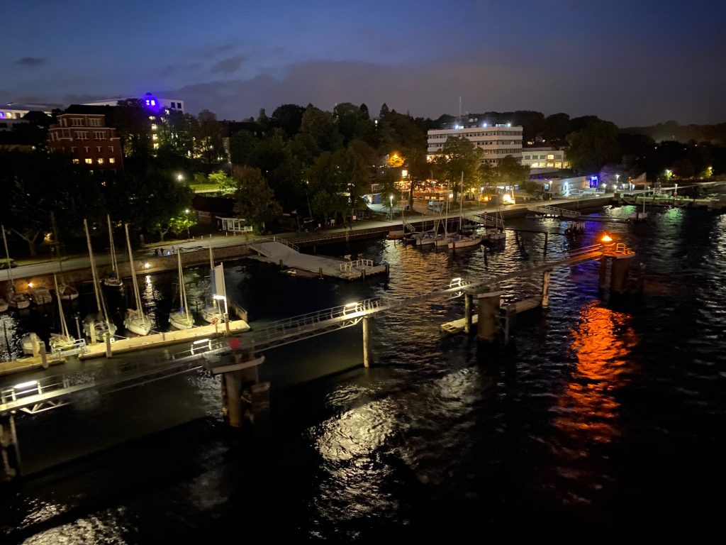 Nach dem Mittagessen, welches wir bei strahlend blauem Himmel wieder draußen einnehmen konnten, führte uns unsere Reise nach Flensburg. Da unser Anleger recht weit vom Altstadtkern entfernt war, gab es regelmäßigen Tender-Verkehr.