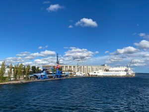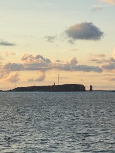 Am späten Nachmittag lichteten wir die Anker und es führte unser Weg für einen kurzen technischen Stopp in das dänische Esbjerg. Wann immer ich diesen Namen höre, muss ich leicht schmunzeln, denn wir waren mal – vor einigen Jahren – auf einer Kreuzfahrt mit dem Ankerherz –Verlag und der MS Hamburg. Eigentlich sollten wir morgens in List/Sylt auf Reede liegend wach werden, aber wir öffneten die Jalousie und sahen Container. Leicht irritiert mussten wir damals herausfinden, dass wir in Esbjerg waren, weil die Wetterlage einen Stopp vor Sylt nicht zugelassen hatte.