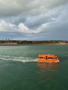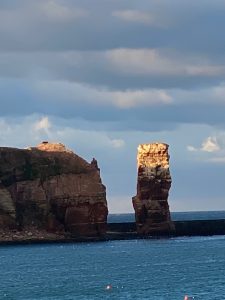Das Auslaufen aus Bremen führte uns am nächsten Tag nach Helgoland. Hier sollte am nächsten Morgen eine weitere Runde mit dem Zodiac anstehen. Leider war die Dünung so heftig, dass aufgrund dessen und aufgrund der vorhergesagten Winde und heftigen Regenschauer leider die Tour mit den Zodiacs ausfallen musste. Es war aber zumindest möglich mit unserem Tenderboot anzulegen und so der Insel einen Besuch abzustatten und mal wieder aktuelle Fotos der „Langen Anna“ zu machen.