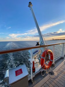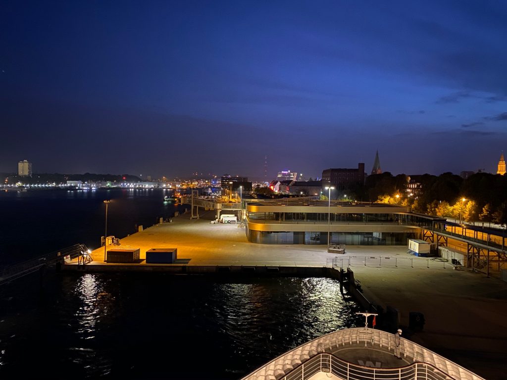 Bzgl. Sylt sollte uns das gleiche Schicksal ereilen, wie damals auf der Ankerherz-Kreuzfahrt – allerdings kamen wir aus Esbjerg und mussten weiter südlich, denn Sylt sollte nur der Zwischenstopp auf dem Weg nach Hamburg sein. So wurde dieser Tag unverhofft zu einem Seetag, der entspannte Erholung auf See mit ein paar Wellen versprach und ein ein kleines Schwesterntreffen mit der MS Europa, die in der Deutschen Bucht auf Reede lag und darauf wartete, wieder mit Gästen an Bord in See stechen zu dürfen.