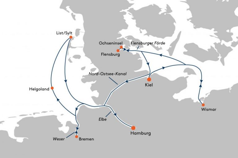 Warum in die Ferne schweifen, wenn das Gute liegt so nah? An dem Spruch ist definitiv etwas Wahres dran – denn in präcoronaren Zeiten wäre man nicht auf die Idee gekommen, ein Expeditionsschiff von Hapag Lloyd Cruises auf den Spuren der Hanse-Städte in Nord- und Ostsee kreuzen und durch den Nord-Ostsee-Kanal fahren zu lassen. Wenn wir nicht im Pandemie-Modus wären, wäre das Schiff aktuell schon fast auf der Positionierungsfahrt Richtung Antarktis – mit dem Ziel, den Gästen Kaiserpinguine – auf Eisschollen vorbeischwimmend – zu zeigen. Dennoch, auch in Deutschland gibt es wundervolle Ziele, die nur mit Schiffen in der Größe der Expeditionsschiffe bereist werden können, die meisten anderen Schiffe sind zu groß – und das fängt bereits mit der Passage durch den Nord-Ostsee-Kanal an.