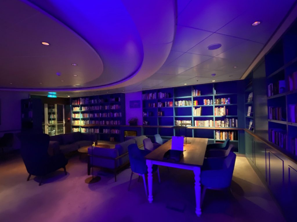 Abends führte uns der Weg zum Sail Away mit Liquid Sunshine nach draußen, zum Essen in den YACHTCLUB. Anschließend ging es ins Theater zum Kabarettisten Henning Schmidtke. Sehr unterhaltsam, mit feinen Spitzen in den Worten, jemand sehr nach unserem Geschmack. Und witziger Weise stellte ich erst im Theater fest, dass ich ihn zum Auslaufen draußen an Deck getroffen hatte und wir eine recht witzige Kommunikation hatten. Aber sei es drum. Wir sehen uns bestimmt mal wieder. Das hoffe ich zumindest. Er hat uns sehr gut gefallen und wir hätten gern seinen Worten, Witzen und Spitzen länger gelauscht. Aber Zeitumstellung ist irgendwie doof und man muss erst mal wieder den passenden Rhythmus finden. Und so ging es dann für uns nach einem Absacker an der frischen Luft zurück in die Kabine.