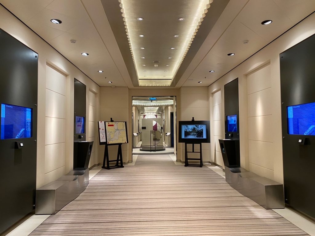 Wir sind dann der verpflichtenden Körpertemperatur-Messung nachgekommen und haben uns ein wenig durchs Schiff treiben lassen. Mit ca. 210 Gästen war das Schiff natürlich nicht mal zur Hälfte ausgebucht und so gab es schöne Fotomotive ganz ohne andere Menschen. Wir achten immer sehr darauf, die Privatsphäre der Mitreisenden nicht zu verletzen.
