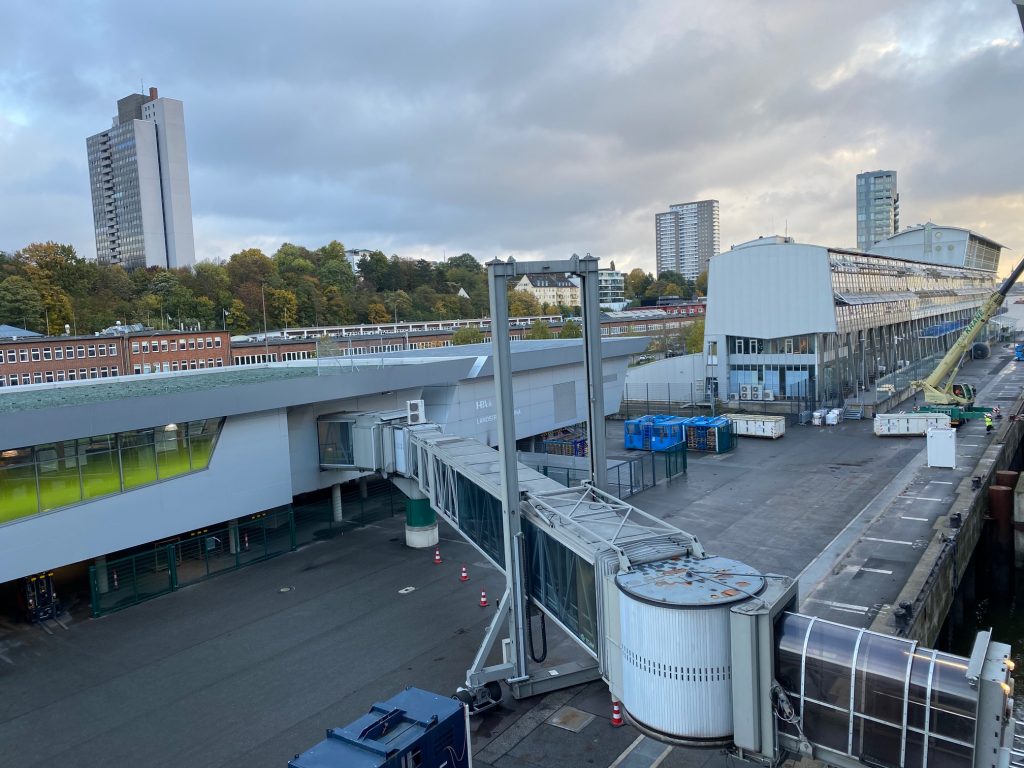 Wir sind gegen 10:00h bei uns zu Hause losgefahren und haben relativ stressfrei und ohne große Staus unser Ziel, das Holzhafen-Parkhaus in Hamburg-Altona erreicht. Hier hatten wir bereits vorher einen Parkplatz reserviert, denn es gibt einen speziellen Kreuzfahrer-Tarif. Man muss nur daran denken, die Karte, die man bei der Buchung als Legitimation angegeben hat, auch bei sich zu haben. Diese Vorabbuchung funktioniert nur einwandfrei, wenn man die Karte zur Einfahrt nutzt.