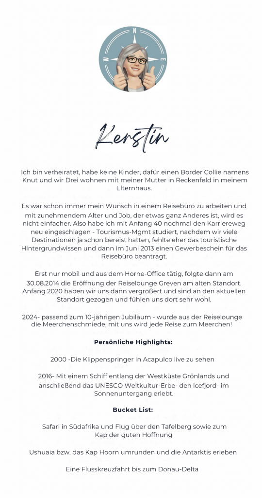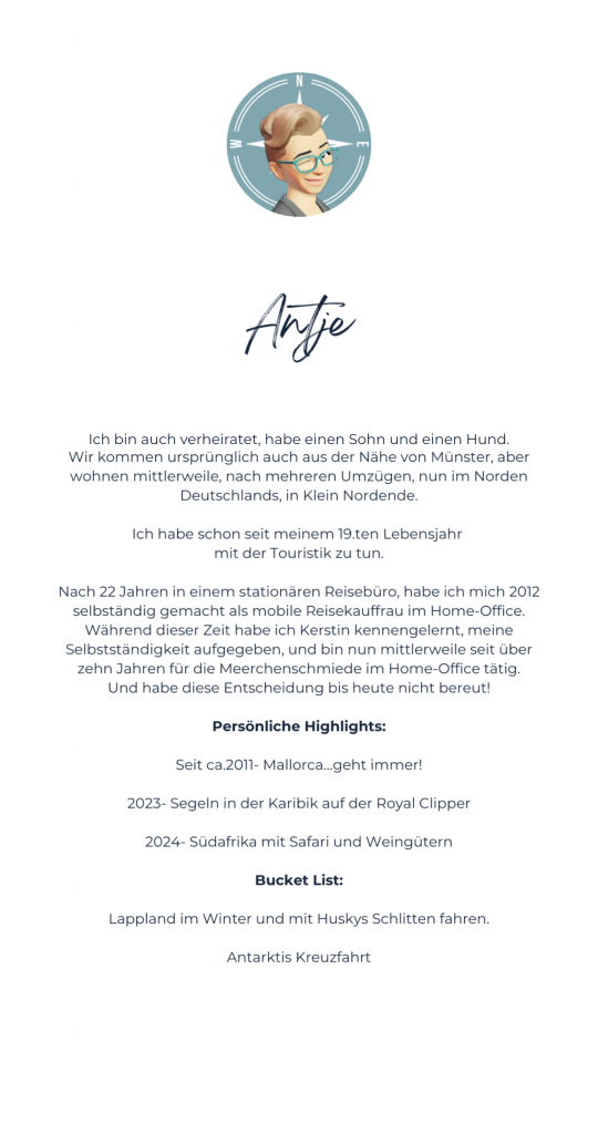 Schön, dass ihr den Weg zu uns auf den Blog und zu unserem Reisebüro gefunden habt, gern möchte ich Euch hier ein bisschen über uns, das Büro und das Reisen erzählen.