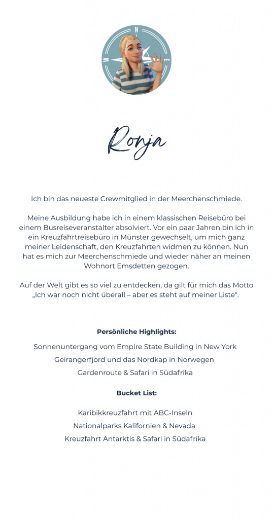 Alles rund um Kreuzfahrten ist der Schwerpunkt unseres Reisebüros. Vor mehr als 10 Jahren hat uns, wie viele andere auch, das Kreuzfahrt-Virus gepackt. Inzwischen haben wir Brasilien, die Karibik, Nordamerika, Nordeuropa mit Nordkap, Grönland, die Ostsee und St. Petersburg, das Mittelmeer, die Kanaren und Kapverden, die Arabischen Emirate, Indien und Südostasien mit Kreuzfahrtschiffen bereist. Es gibt also auch immer Tipps und Ratschläge, die auf eigenen Erfahrungen beruhen. Immerhin liegen jetzt mehr als 200 Reisen auf Kreuzfahrt-Schiffen hinter uns, mal kürzer mal länger, aber immer auf Entdeckung.